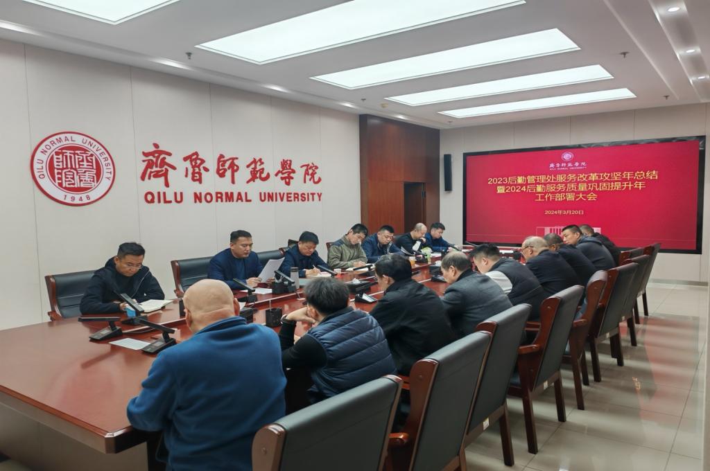3月20日下午,学校在章丘校区第二会议室召开2023后勤管理服务改革攻坚年总结暨2024后勤服务质量巩固提升年部署大会。党委委员、组织部部长杨磊出席会议并讲话,后勤管理处全体工作人员、外包服务单位负责人参加会议。
