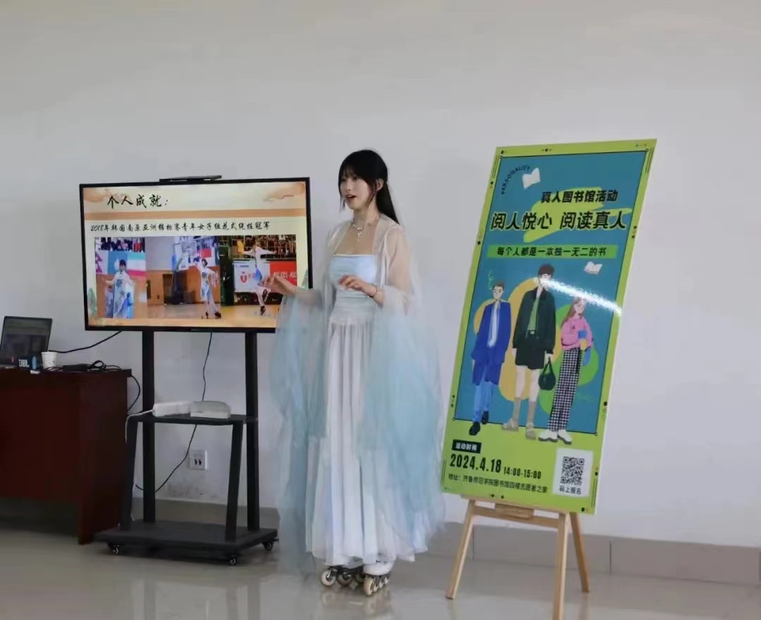 “躬耕教坛 强国有我”教育家精神主题书展,汇聚了众多教育家的智慧结晶,通过书展的形式,让师生们近距离感受教育家们的高尚情操和卓越成就,从而激发大家对教育事业的热爱和追求;“书韵流芳智慧共享”线下读书会,为师生们提供了一个分享阅读心得、交流思想感悟的平台。在这里,大家或围坐一堂,共读经典,或畅所欲言,分享读书的快乐。通过面对面的交流,师生们的心灵得以沟通,智慧得以碰撞;挑战三小时阅读活动是一场阅读的盛宴,同学们在限定时间内,尽情畅游书海,品味文字的魅力。这项活动不仅考验了同学们的阅读速度和理解能力,更激发了大家对知识的渴望和追求;“真人图书馆”活动更是突出创新创意,充分发挥朋辈引领作用。此次活动特别邀请体育学院学生、2022年度全国自由式轮滑锦标赛花式绕桩冠军秦雨晴作为“真人图书”,向同学们分享了自己的轮滑经历和成绩背后的故事。