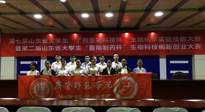 曹子谊教授、柴振光讲师指导房凤艳、白如水、于洋同学的《重盐渍化土地绿化技术推广》获科技创新创业组“特等奖”;张峰教授、崔大勇教授指导陈召松、陈晓敏同学的《中学生物实验工具箱的设计推广》,李娟讲师、蒋苏副教授指导刘波、王胜楠、江赫的《植物绿色微景观的设计及推广》,孙洪兆教授 、史远副教授指导毕明轩、王潇雪、张奕童同学的《金针菇多糖延缓骨骼肌疲劳的作用研究》荣获科技创新创业组一等奖;安霞讲师、刘倩高级实验师指导李琰、郭学霞、蒋含含同学的《芦荟多糖酸奶的研究与开发》荣获二等奖。生物化学实验技能大赛中,杨晓蕾讲师、张海龙副教授指导倪伟琳、刘悦、刘喆同学的《不同品牌氨基酸洗面奶中氨基酸表面活性剂含量的测定》获“特等奖”;傅一鸣讲师、李师鹏教授指导苏纯洁、吕飞、孙晟皓同学的《鉴别掺假猪牛羊肉 — 利用物种特异性基因扩增方法》获得“一等奖”;蔡云飞教授、王春玲副教授指导秦浩、赵壮壮同学的《饮品中氨基酸的纸层析分离、鉴定及定量分析》获得二等奖。