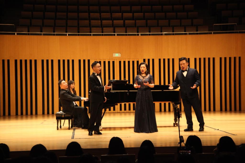 本场音乐会共二十余首作品,涵盖中、韩、德、意、英五种语言,横跨巴洛克、古典、浪漫、近现代等几个音乐时期,有清唱剧、艺术歌曲、歌剧咏叹调、重唱等多种体裁。万丹、李鳌两位著名歌唱家的助阵,博得了在场观众的阵阵掌声;BEAT365官网音乐学院钢琴教研室主任、合作钢琴家刘源副教授担任全场的钢琴伴奏;徐定兴用他高超的技巧和细腻到位的音乐征服了全场观众,音乐会获得圆满成功。