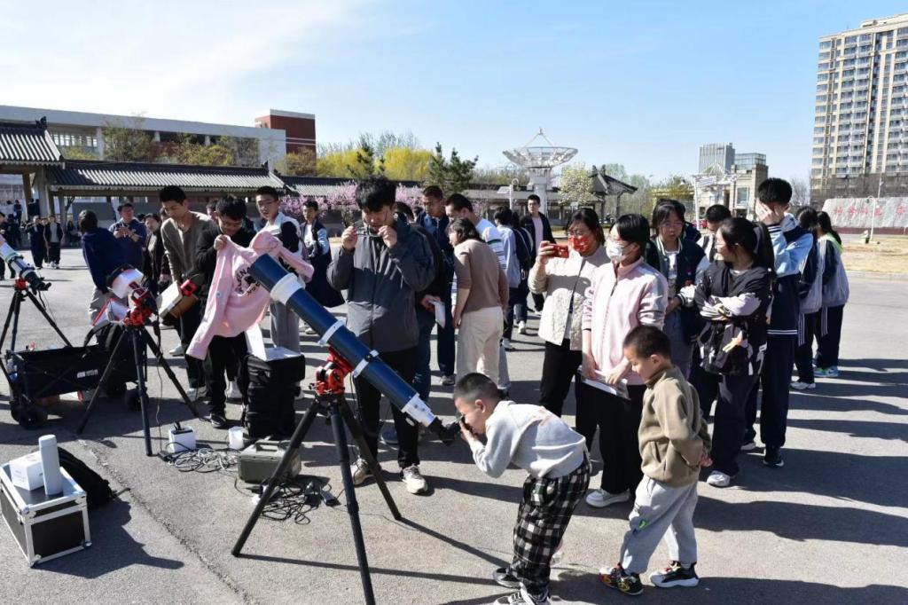 在紧张刺激的竞赛环节后,活动还组织了观测太阳黑子及色球层的活动。在专业人员的指导下,学生们使用望远镜观测了太阳,亲眼目睹了太阳表面的壮丽景象。本次观测活动不仅让学生们近距离感知到天文学的魅力与学术氛围,对天文观测有了更为直观的认识,更重要是的是激发了学生们的科研兴趣,强化了学生们对天文学探究式学习的认知。