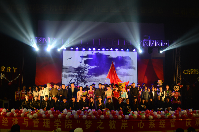 2015年12月24日,经济与管理学院在体育馆举行了以“梦之彼岸,心系经管”为主题的双旦晚会,晚会吸引了众多经管学院及其他学院的师生前来观看。经济与管理学院院长万克德同志、党总支书记蔡平胜、副书记王允华,教师教育学院团支书记孙建凯同志以及经管学院团总支的辅导员老师们参加了本次晚会。