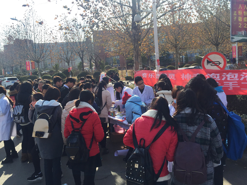 活动伊始,便吸引了许多在校师生以及社会人士驻足观看。活动志愿者现场讲解了有关化学的科普知识,简单介绍了泡泡液、雪花膏、手工皂的制备,以及粗盐的提纯等精品实验公开课,并给同学们展示了不同类型的简单化学实验,同时进行着活动的报名程序。同学们踊跃报名,积极参与,活动现场气氛极其热烈。