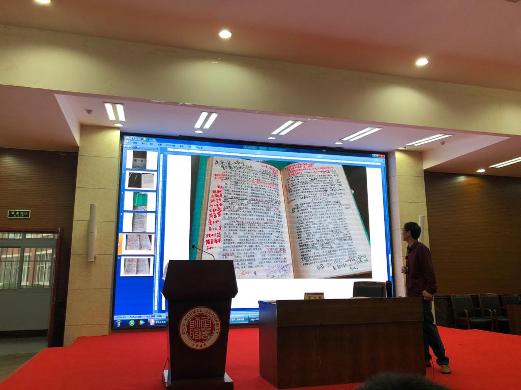 在讲座现场,夏立君向师生们展示了两个小本子,每本都已有四十余岁的“高龄”。他说,在他儿时的年代,学习和生活条件极差,书本都是同人家分享,而他为了学习古文,在自制的小本子上抄写古文。小本子采用八分钱一张的白纸裁成等大小多片,然后用线作订书机把纸片串成本子。夏立君说这样的小本子还有很多,放在包里随身携带,随时背诵,他这样总结道:“没有扎实的阅读就不会有出彩的人生。”