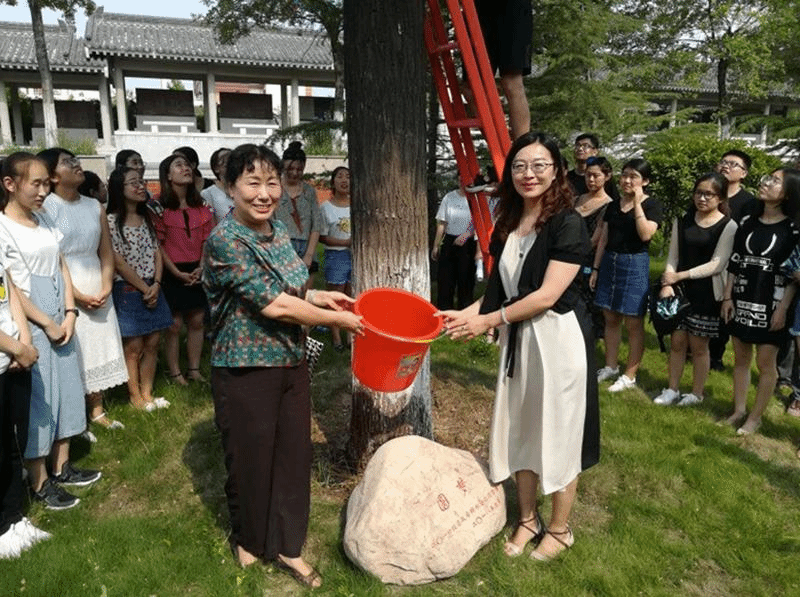 在毕业离校之际,马克思主义学院2018届思想政治教育本科班全体毕业生为表达对母校的培育之恩、教导之情,自愿捐款认购了一棵槐树,取槐树自古即赋予的“仁和祥瑞”之意,意寓“槐荫母校、钟灵毓秀”。在树下培有一鹅卵石,镌入“圆梦”二字,意寓马克思主义学院学子“圆今日梦、圆明日梦,圆自己梦、圆国家梦”。他们期盼着待到国槐遮天蔽日时,他们有所成就,满载而归,在这棵绿阴如盖的槐树下,再度聆听老师的教诲,再叙同学之谊,共话真理之魅力,同悟人生之真谛。