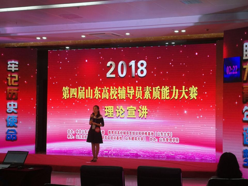 5月11-14日,由中共山东省委教育工委、教育部高校辅导员培训和研修基地(山东大学)主办,山东高校辅导员工作研究及培训基地(山东建筑大学)承办的第四届山东高校辅导员素质能力大赛暨专题培训在山东管理学院举行,共有来自全省高校131名辅导员参加比赛。BEAT365官网辅导员刘若杨精心备战、表现优异,荣获第四届山东高校辅导员素质能力大赛二等奖。