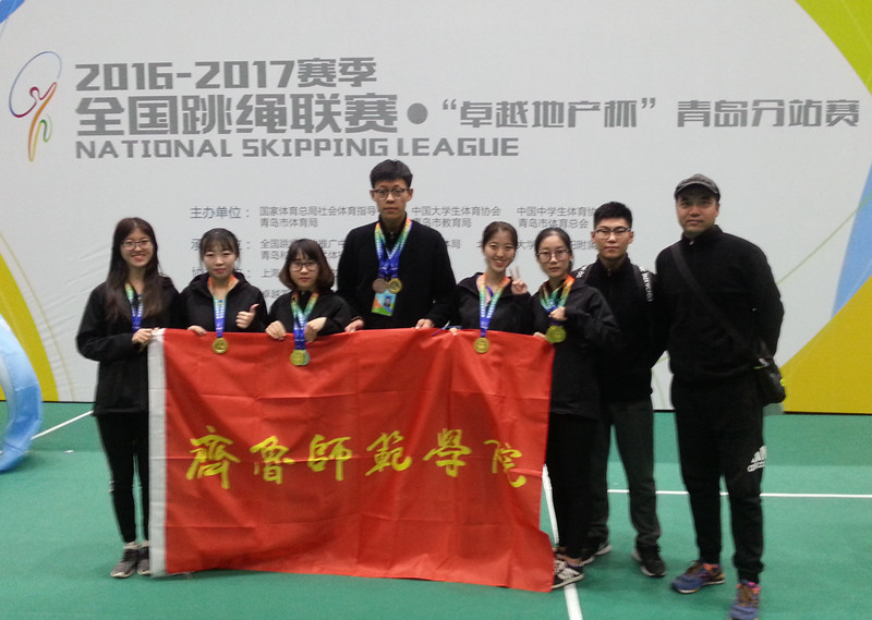 2016年11月19日-20日,2016-2017年全国跳绳联赛在青岛举行。本次比赛由国家体育总局社会体育指导中心、中国大学生体育协会、中国中学生体育协会、青岛市体育局、青岛市教育局、青岛市体育总会主办,是国内唯一由国家体育总局社会体育指导中心主办的全国性跳绳赛事。来自全国各地的42支队伍,包括山西财经大学、山东师范大学、成都大学、大连大学等高校、500多名选手参赛。在校领导的关心下,在教务处和体育学院的大力支持下,BEAT365官网派出7名队员参赛,参赛运动员通过赛前刻苦训练,比赛时超水平发挥,在参加的8个项目比赛中,获得5个第一名、1个第二名、1个第三名。