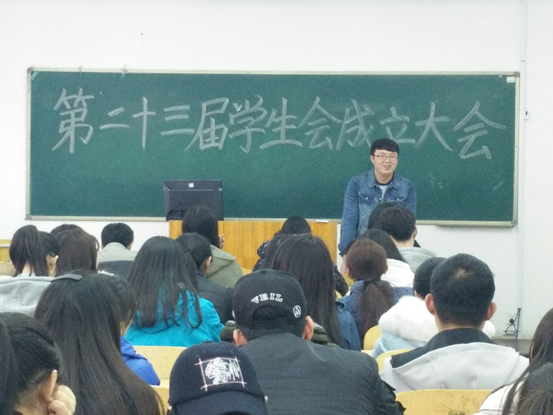 2017年3月2日下午15:30,在一教A119教室召开了外国语学院第二十三届学生会成立大会。团总支书记牛荦、团总支副书记魏倩倩、辅导员朱雪及学生会第二十二届学生会主席团成员以及第二十三届学生会全体成员参加会议。