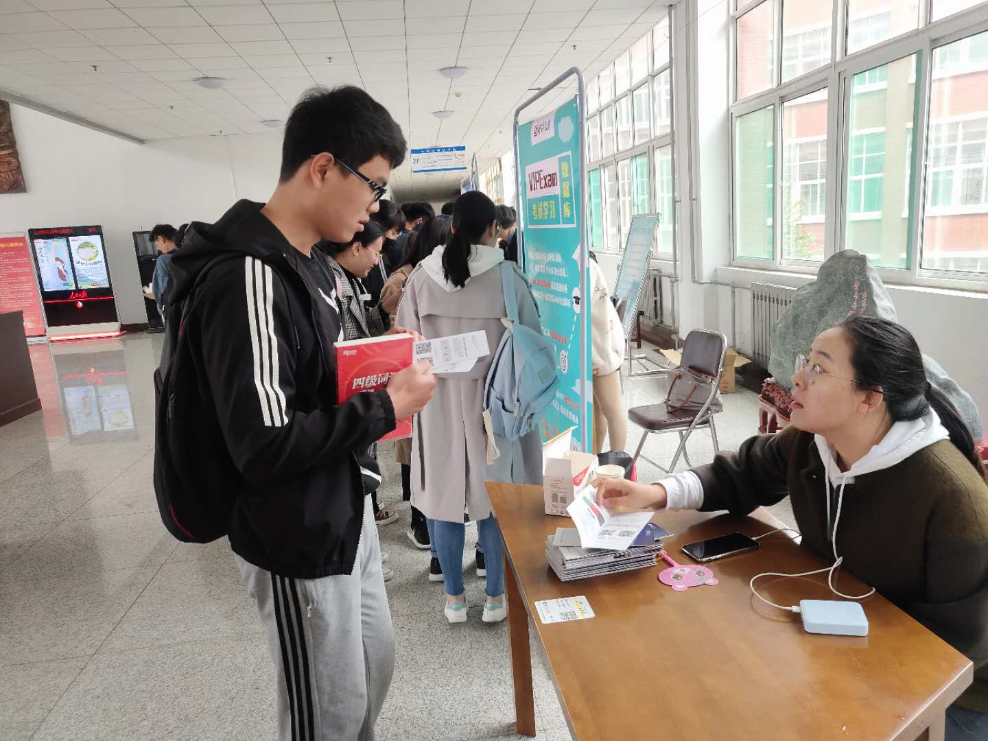 数据库工作人员与图书馆相关人员通过现场发放数据库产品宣传资料、讲解或操作演示、答题抽奖等方式向学校师生读者宣传介绍馆藏数字资源及使用方法,解答师生读者在利用数字资源数据库过程中遇到的各种问题。同时,馆员积极宣传图书馆微信公众号和校外访问系统。