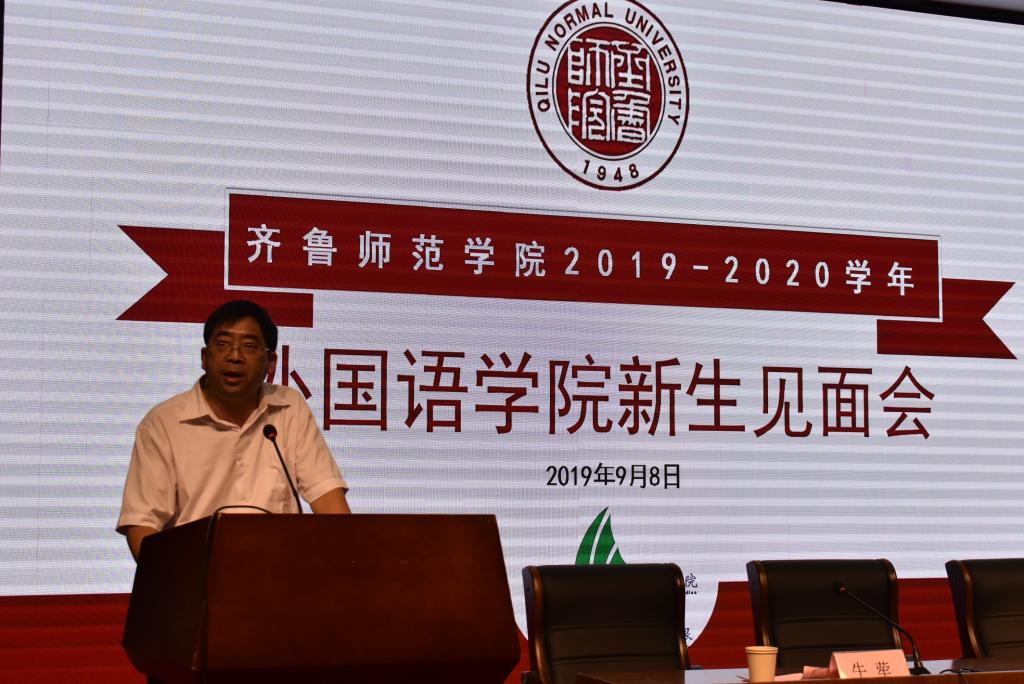 副院长臧学运向新生介绍了学院的历史沿革、基本概况、教学设置和教师人才队伍。他在讲话中通过提出的“英语专业具有工具性还是人文性”、“想要成为什么样的人”、“选择何种人生态度”三个问题,引导新生在求学路上“勤奋”、“坚持”,做有思想、有知识,有品德,对社会有益之人。