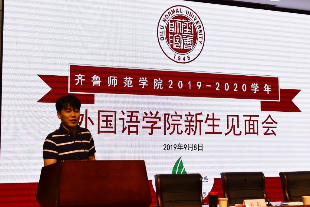 9月8日下午,外国语学院在章丘校区学术报告厅举行新生见面会。外国语学院副院长宋秀葵、党总支副书记郁志营、副院长臧学运、办公室主任栾毅之出席会议。团总支副书记孙海燕、辅导员倪冉、新生各班班主任以及全体新生参加了见面会。会议由团总支书记牛荦主持。