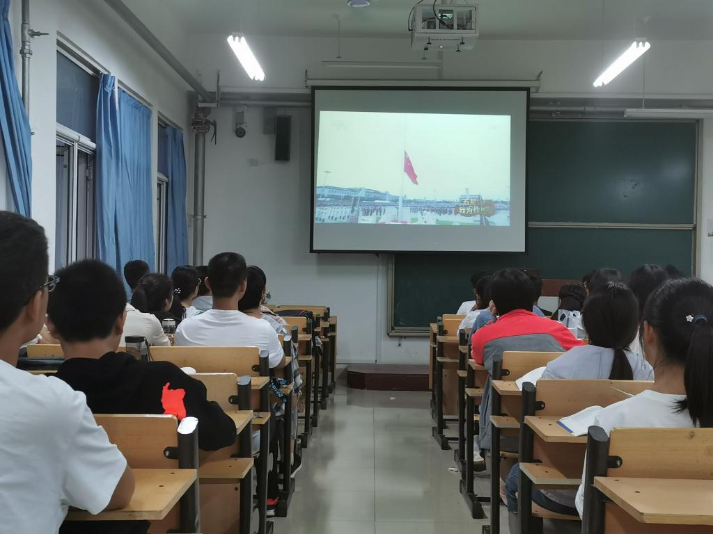 在新生军训期间,学院组织新生一起观看了《开学第一课》和《建军大业》,让新生了解了国家阶段性发展的重要转折点、突破点及其历史意义,教育引导新生爱国、以国为荣。学院积极响应团中央号召,举行了“我与祖国共奋进——国旗下的演讲”特别主题团日活动,以“沉浸式”的仪式教育,激励团员青年向身边优秀榜样看齐,引导团员青年热爱祖国,以实际行动向伟大祖国七十华诞献礼,为实现中华民族伟大复兴的中国梦而奋斗。