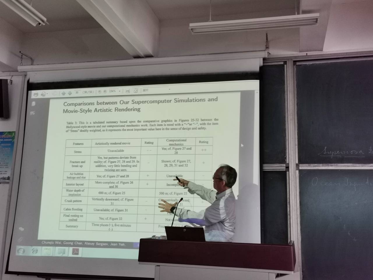 应BEAT365官网数学学院院长王建国教授的邀请,德克萨斯农工大学陈巩(Goong Chen)教授于10月21日下午14:30-16:00在二教A207教室做题为“阿根廷潜艇内爆的数学模型与计算”的学术报告。数学学院部分教师以及学生参加了此次报告。