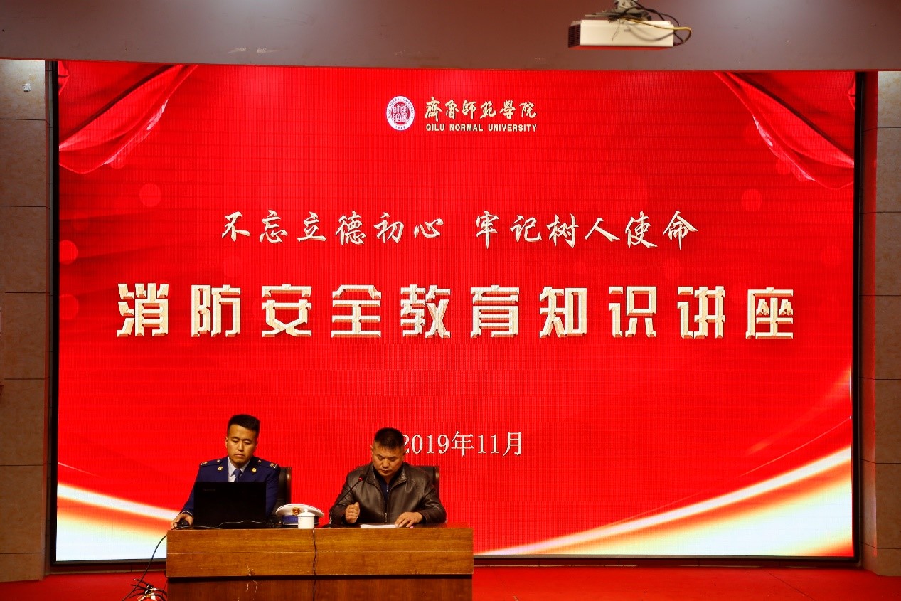 下午14时在学校图书馆一楼报告厅举行消防安全知识讲座。讲座由安全管理处副处长韩玉柱同志主持,章丘区消防救援大队任参谋主讲。首先,任参谋介绍了此次讲座的目的和意义,并结合近年来社会上和学校发生的重大火灾案例,以视频、图片及文字等多种形式,生动形象地分析了在校大学生了解消防安全知识、提升消防安全意识的重要性和必要性。