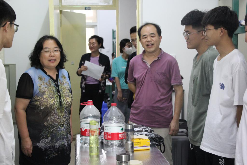 当天下午,李红艳、张延昌携全体辅导员来到新生宿舍看望新生,嘱咐大家要互相关心、互相帮助,出行要结伴而行,注意安全;提醒大家在疫情防控上不得有任何的松懈,做到日常体温监测,若有体温异常,身体不适立即联系辅导员。老师的关怀让刚刚远离家的学子们感受到了学院大家庭的温暖,缓解了他们初入新环境的陌生与不适,他们将尽快适应新环境,在新的良好的校园氛围中专心投入学习,努力实现自身理想。