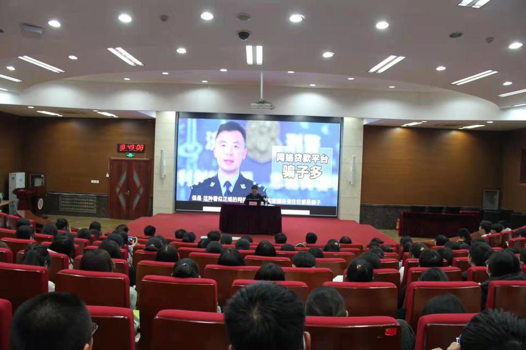 报告会上,术警官为同学们详尽举例了几项常见电信诈骗类型,包括网络刷单、网贷诈骗、冒充类诈骗、投资理财诈骗等;逐一分析了各种骗术的特点、诈骗程序、防范措施等,并用多个真实事例向同学们展示了骗子多种诈骗手段。在宣讲过程中,术警官还向同学们展示了犯罪分子洗钱的过程,使同学们深入了解了被诈骗后第一时间报警的重要性。