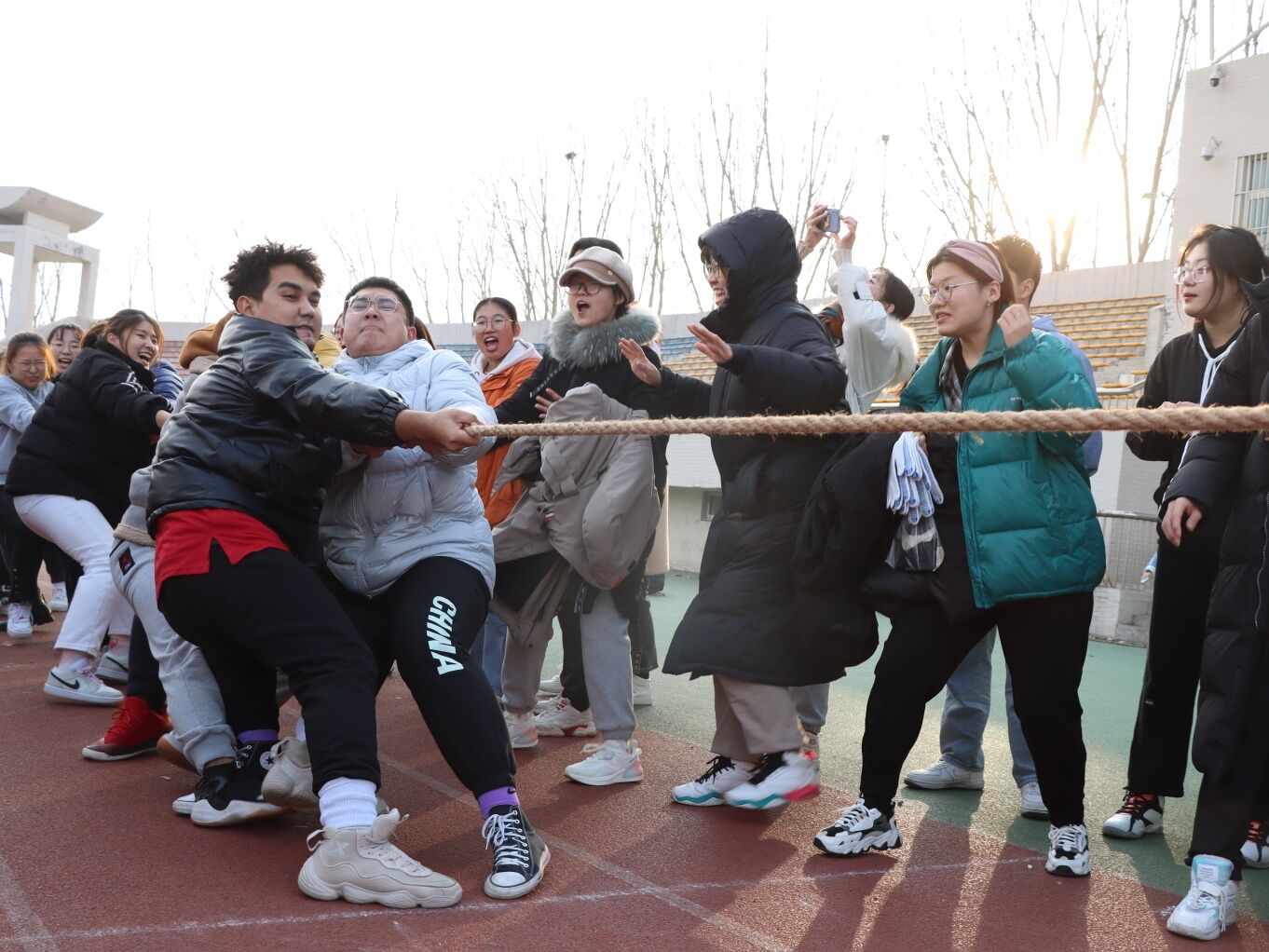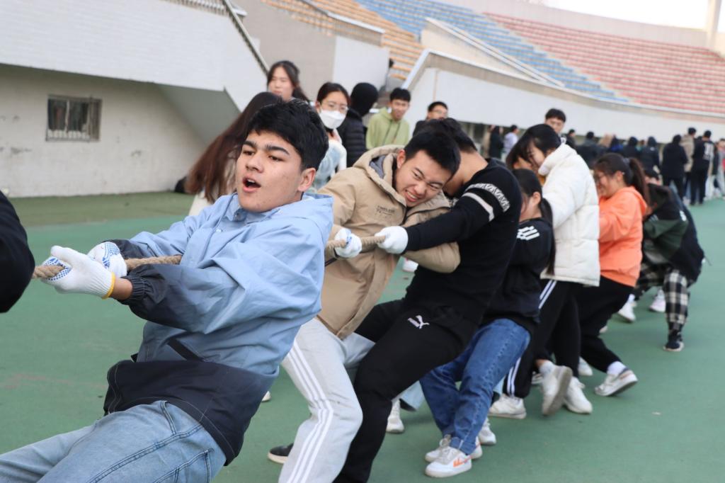 比赛过程中,此起彼伏的呐喊声飘扬在上空,选手们斗志昂扬,展现出了自己最好的状态。尤其是在胜负难分的时刻,大家咬紧牙关,毫不退却,跟着口号整齐地后倒、回拉,他们展现了顽强的毅力与拼搏的精神,用一致的行动与集聚的力量诠释了团结的意义。