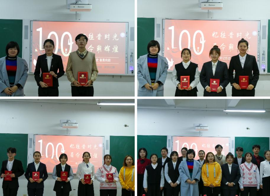 随后,由主持同学公布决赛结果,李佳双、侯明昊荣获一等奖,并评出二等奖三名、三等奖五名。两位老师上台为各位同学颁奖,合影留念。这次活动是物理与电子工程学院爱国主义系列主题教育的一个重要方面,增强了青年学子的文化自信,激发了爱国主义热情,深化了党史学习教育的内涵。本次演讲比赛历经三个月后圆满结束。比赛将忆党史、颂党情与学生教育工作紧密结合,深情讲述了中国共产党成立百年来波澜壮阔的革命历史,激发了学生们的爱党热情,展现了学院的良好精神风貌。