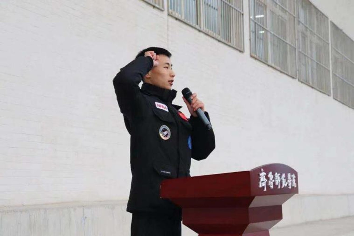最后,由国旗护卫队团支部书记王政远带领全体同学在烈士们用鲜血染红的国旗下庄严宣誓——“热爱祖国,忠于人民;牢记使命,不忘责任;志强存高远,脚踏实地;爱校护校,诚实守信;感恩父母,回报社会;尊敬师长,团结友爱;知行合一,全面发展。”在这坚定的声音中表达了同学们勤奋学习、树立思想、成长成才、立志报国的信心和决心。