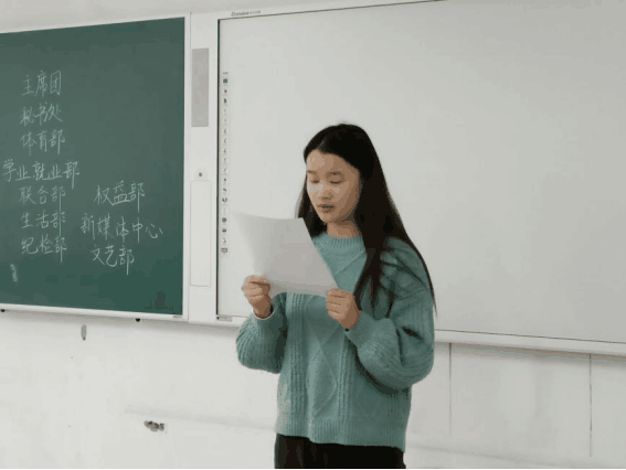 会议伊始,学生会各部门临时负责人按照顺序上台述职。他们认真总结本学期的日常工作和经验教训,着重分析本部门在运行过程中的优点和不足,并明确表示将会在工作实践中积极自省完善自我,切实提高工作能力,全面提高工作水平。而后,贾龙对于马克思主义学院学生会成员的工作能力表示肯定和赞许。他指出,学生干部应当定位准确,严于律己,以身作则,在各项工作中加强自身素质锻炼。与此同时,他向与会同学们强调,学生干部理应将为学生服务、为学校建设、为民族复兴、为国家发展作为自己的初心使命,不仅要在班级中起到引领作用,还要加强思想政治引领,成为拥护社会主义的人才。随后,贾龙向马克思主义学院学生干部提出以下要求:一是学生会各部门要加强沟通协作,勠力同心,砥砺前行,切实提高团结合作的能力;二是学生干部要放平心态,以身示范,脚踏实地为老师们和同学们服务;三是学生干部要加强自身修养,提升工作素质,在日常工作中切实做到抓安全、抓学风、抓规范、抓合作、抓活动、抓建设,发挥学生干部联系学院和同学们的纽带作用。最后,王雅文对本次会议做出总结,她向与会同学们强调本次述职报告会的重要性,鼓励学生干部积极发挥模范带头作用,并对马克思主义学院学生会的发展前景做出展望。