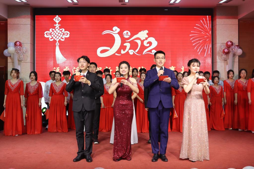 《一生所爱》和《一生中最爱》,这两首歌唤起了同学们心中埋藏的记忆,一句句歌词无不触动着人们最深处的情感,让人回味无穷,潸然泪下;相声《论捧逗》以幽默、反串等形式给我们无限欢乐;新疆舞蹈《丝路花雨》奔放的节奏,曼妙的身姿,典雅的气质无不令人陶醉;歌曲串烧充满着青春的理想与朝气更是将汇演推向高潮。慷慨激昂的朗诵《永远跟党走》 带领同学们重温了那段激动人心的光辉岁月,永远跟党走,走出人生的价值, 青春的靓丽,永远跟党走,走向祖国的明天,民族的未来,展示了当代大学生不忘历史昂扬向上的精神面貌,鼓励大家努力担当未来的责任,争做民族的脊梁;手语表演《光的方向》传递了人与人之间的友爱,也让我们看到了手语中蕴含的力量;青春的舞步,青春的舞曲,青春的不可思议,在全场雷鸣般的掌声中,舞蹈串烧舞出了青春的活力,舞出了时代的风采,展现出校园内一道靓丽的风景;脱口秀《诈骗,咱不怕》以朴素的表演与幽默的形式,警示了人们在生活中防止诈骗;歌曲《成都》,通过宛转悠扬的旋律,让同学们仿佛置身于静谧安适的成都街头,久久沉浸;小品《乌龙快递》讲述了疫情当下的人情的温暖,让我们懂得了疫情期间医生、护工们的艰难与辛勤付出;原创歌曲《偷影子的人》让人感受到生命无时无刻在经历成长的洗礼;歌曲伴舞《风月》《丽人行》优美的舞姿让我们赏心悦目;最后大合唱《万疆》《难忘今宵》将所有的祝福串成动人的诗歌,将无尽的思绪谱成华美的乐章。此外,为了增加喜庆的气氛,活动中穿插了三次幸运大抽奖活动,使现场的气氛愈加热烈。