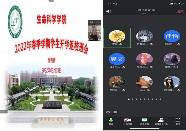 为指导学生做好开学返校工作,平安返校,3月3日,生科院辅导员张宏熙、房继德、祖群、徐茜茜、陆含组织全院学生参与线上会议,部署相关工作事宜。根据上级要求,辅导员向同学们阐明了返校条件及要求:开学前14天,学生要通过“智慧师院”APP上报每日健康状况,全体学生须持山东省绿色健康码、行程码到校报到;省外学生还须持有48小时内核酸检测阴性证明等。