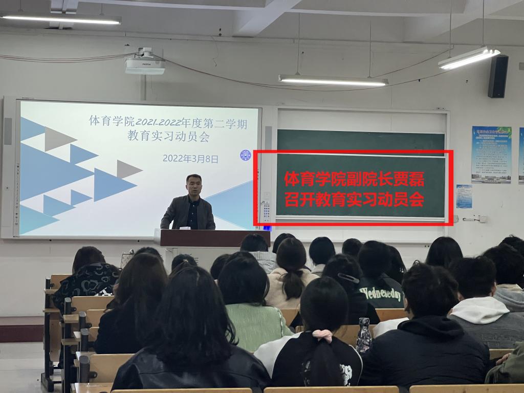 教育实习是实现应用型人才培养目标的重要途径。为做好体育学院2019级各专业实习工作,确保各专业实习顺利进行,根据学校教务处有关毕业生专业实习工作的要求,结合体育学院实际情况,3月8日召开实习工作会议,贾磊在会上强调实习过程要紧紧围绕专业人才培养目标和职业岗位的素质、技能训练等综合培养的要求,做到专业理论知识与专业岗位实践有机结合和相互促进。