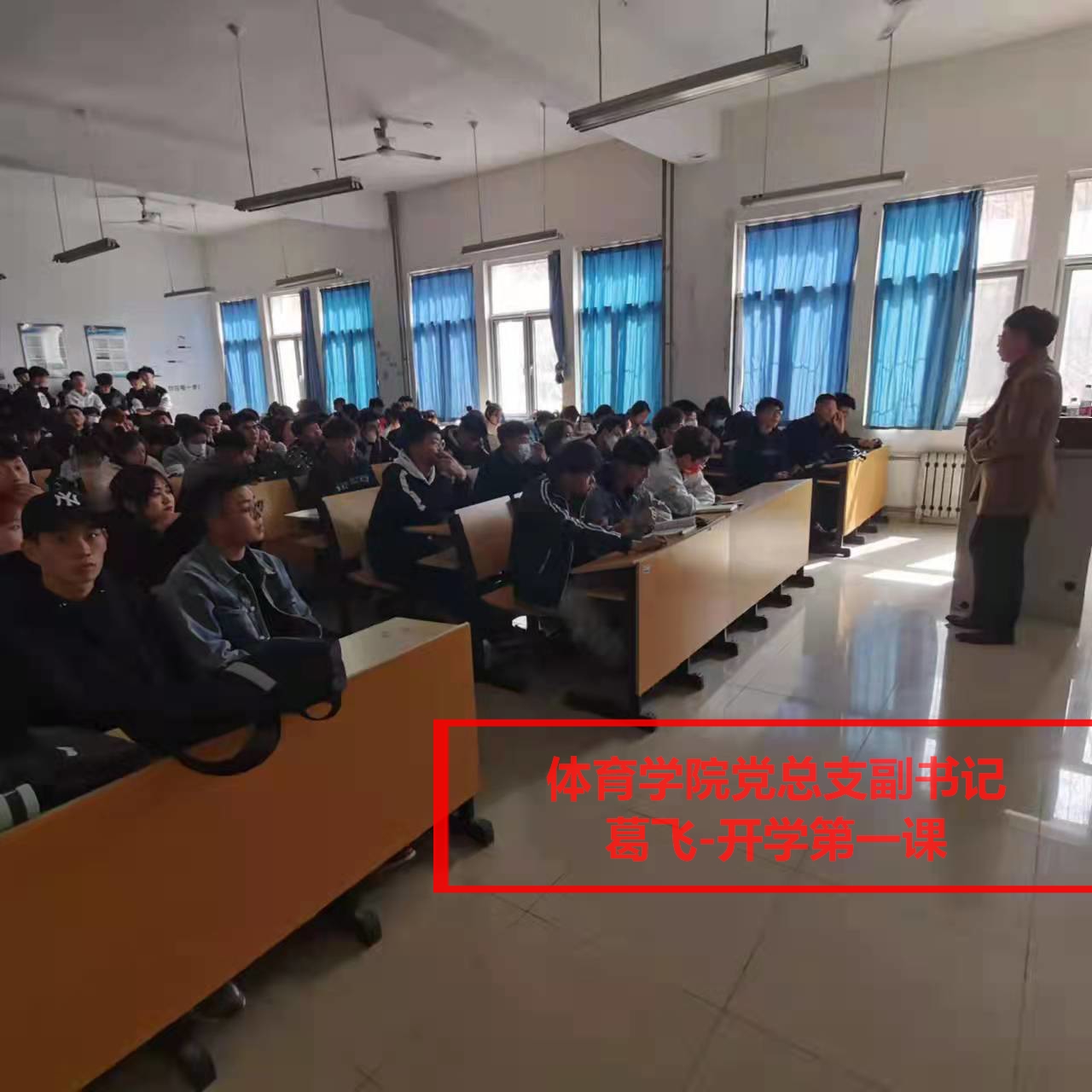 体育学院院长朱礼恒在本学期体育教育专业第一节排球课中将“中国共产党人的精神谱系——女排精神”作为“开学第一课”的重要内容进行讲解,用“祖国至上、团结协作、顽强拼搏、永不言败”的女排精神激励每一名同学青春向党、心怀祖国、认真学习、刻苦训练,做新时代的大学生。体育学院党总支书记胡义忠在本学期第一节课将习近平总书记关于冬奥会、冬残奥会的重要指示批示、重要讲话精神以及习近平总书记给冬奥健儿的回信作为重要内容纳入课堂教学,并将人民出版社2022年2月出版的《深入学习习近平关于体育的重要论述》一书向同学们作了介绍。体育学院副院长贾磊3月5号接受山东教育卫视聚焦全国两会栏目采访中表示,要坚决贯彻落实立德树人根据任务,促进学院高质量发展,要培养“德智体美劳”五育并举的体育专业优秀人才。