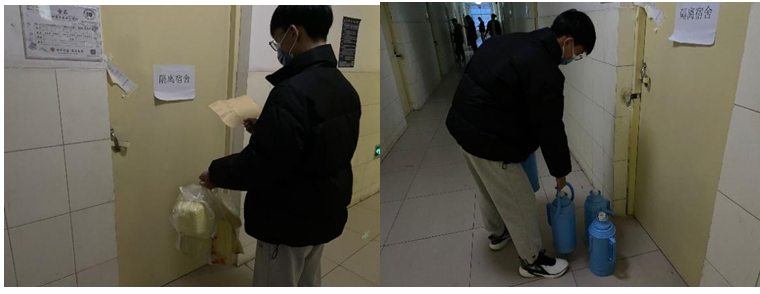 每天,在其他同学还没有起床的时候志愿者们就来到隔离宿舍门外,“同学,今天想吃什么呀?”,“把空热水瓶放在门口就行,我买完饭就给你们打水” ,“记得开窗消毒啊”……这一句句贴心地询问,无私的付出,换来的不仅是隔离宿舍中同学的一声声感谢,更是学院上下团结防疫抗的决心。一扇门能隔开面对面的拥抱,却隔不开心与心温暖的传递。
