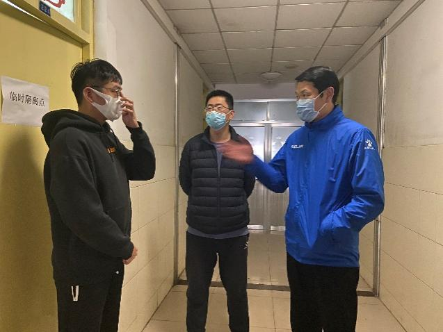 为充分了解隔离学生的基本生活情况、做好隔离学生的心理疏导,体育学院院长朱礼恒、党总支书记胡义忠带领团总支辅导员多次进入学生公寓楼,对正在隔离的同学进行了看望和安慰,同时检查在疫情防控隔离工作的落实情况。