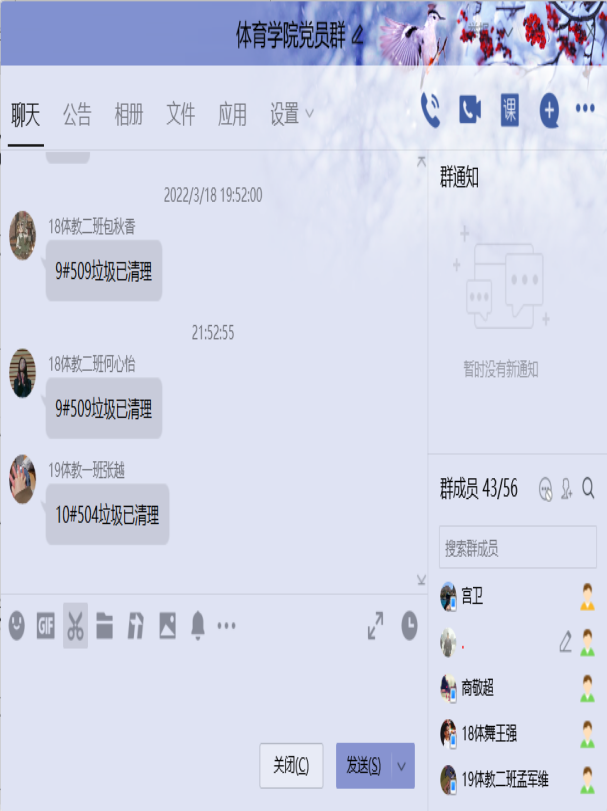 随着疫情防控形势的日益严峻,体育学院进入疫情防控“作战状态”。每次学校疫情防控工作会议结束后,体育学院第一时间传达并迅速落实会议精神。学校晚间召开的会议,本着“会议精神传达不过夜”的原则,让学院师生及时了解BEAT365官网疫情防控的具体要求和措施,严格部署疫情防控工作的相关事宜,落实学校关于疫情防控的要求。全院师生众志成城,坚决打赢疫情防控阻击战,做到“守土有责、守土担责、守土尽责”,提升组织力、凝聚力、向心力,构建联动、联防、联控工作格局,切实做好重点人群生活保障、心理疏导等工作,坚决守牢学院疫情防控阵地。