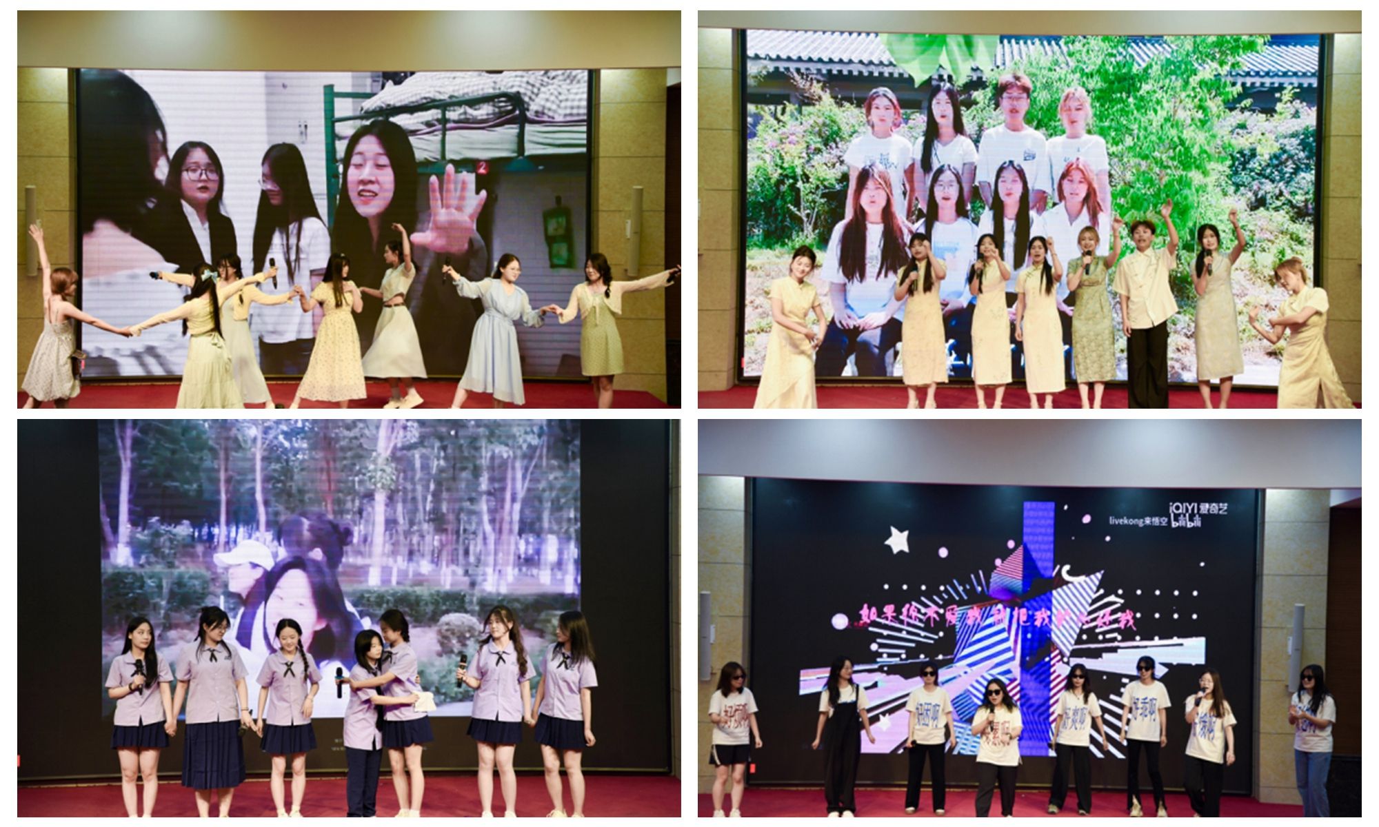 年轻的活力,用歌声诠释;青春的魅力,用舞姿展现。比赛在热情洋溢的啦啦操开场舞中拉开帷幕。紧接着,10组参赛宿舍依次登台演唱。演唱曲目形式多样、风格各异。开场的《逐空》空灵且优美;《一笑倾城》让青涩甜蜜的少年爱恋触目可及;中场表演《全是爱》high翻全场;《错位时空》传递出青春的美好;伴随《灿烂的你》演唱完毕,比赛也接近尾声......话筒不仅传递出音乐的动人魅力,更表达出同学们对未来生活的憧憬与热爱。