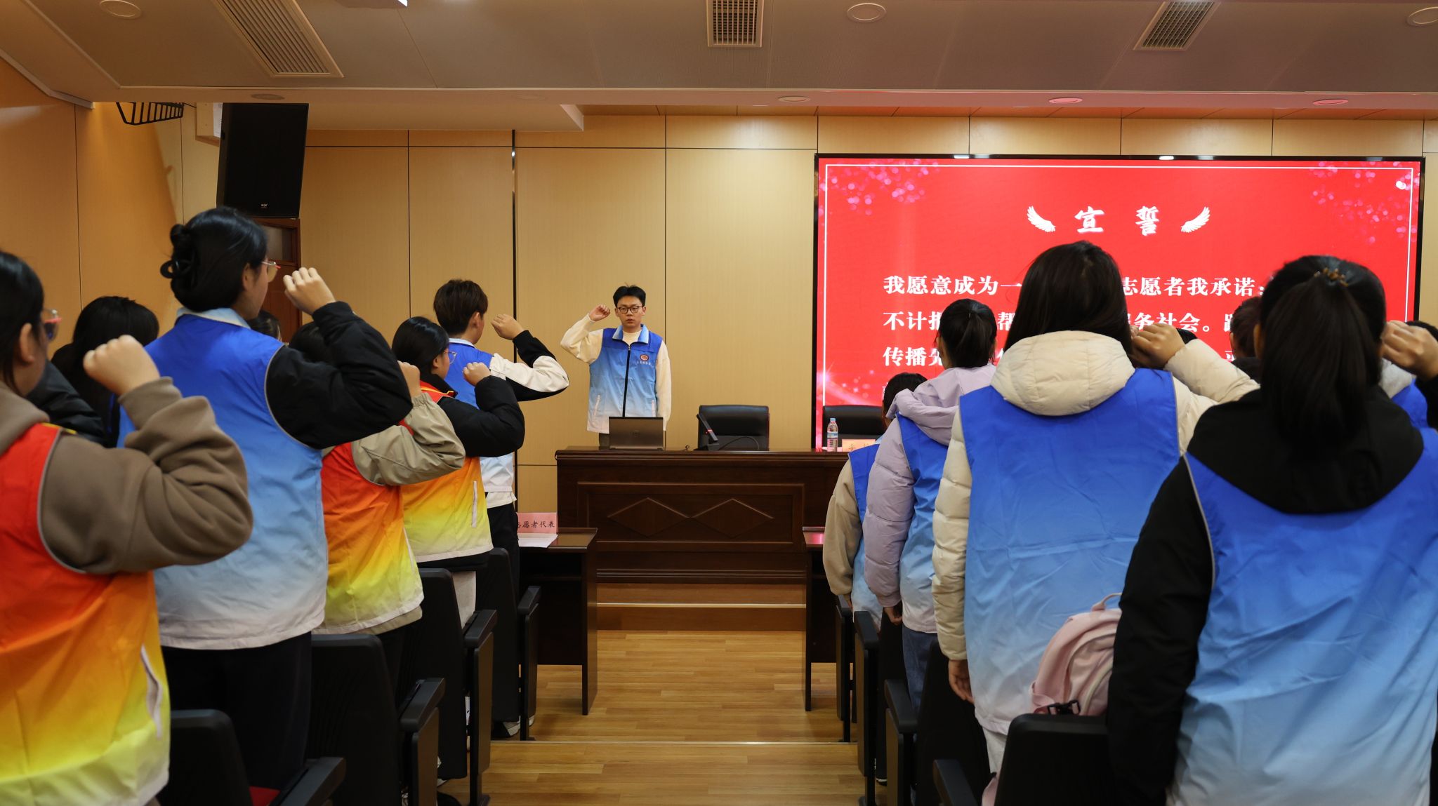 汇聚时代暖流,培育文明新风。青年志愿者协会图书馆分会换届大会在铿锵有力的宣誓中圆满落幕。下一步,图书馆将进一步加强志愿者队伍建设,不断提高志愿者队伍的整体素质,制定规范的管理办法和细则,把服务和育人有机结合起来,努力开创志愿服务行动新局面。