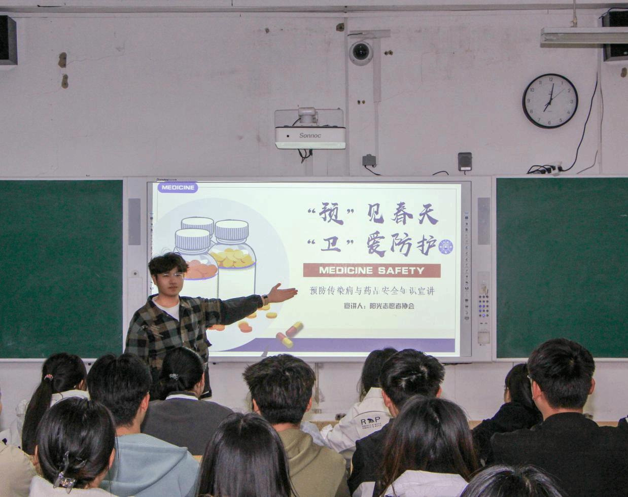春季气温回升,各种传染病进入高发期,为提高学生的健康意识,掌握有效的预防措施,阳光志愿者协会面向学院学生开展“‘预’见春天·‘卫’爱防护”预防春季传染病知识讲座。主讲人通过数据图表与3D动画生动解析传染病的传播趋势,现场手把手教学“七步洗手法”,详解消毒液科学配比及宿舍通风要点;以感冒药、退烧药为例,用“一查二对三问”口诀指导学生规范用药,强化学生安全认知。活动现场,同学们争相分享“消毒液调兑口诀”等实用妙招,并踊跃参与知识问答。此次宣讲将专业知识转化为生活化服务,彰显出阳光志愿者协会“干一行钻一行”的爱业初心,以“手把手教洗手”“面对面解惑”的温情实践,让雷锋精神推动志愿服务生动化。