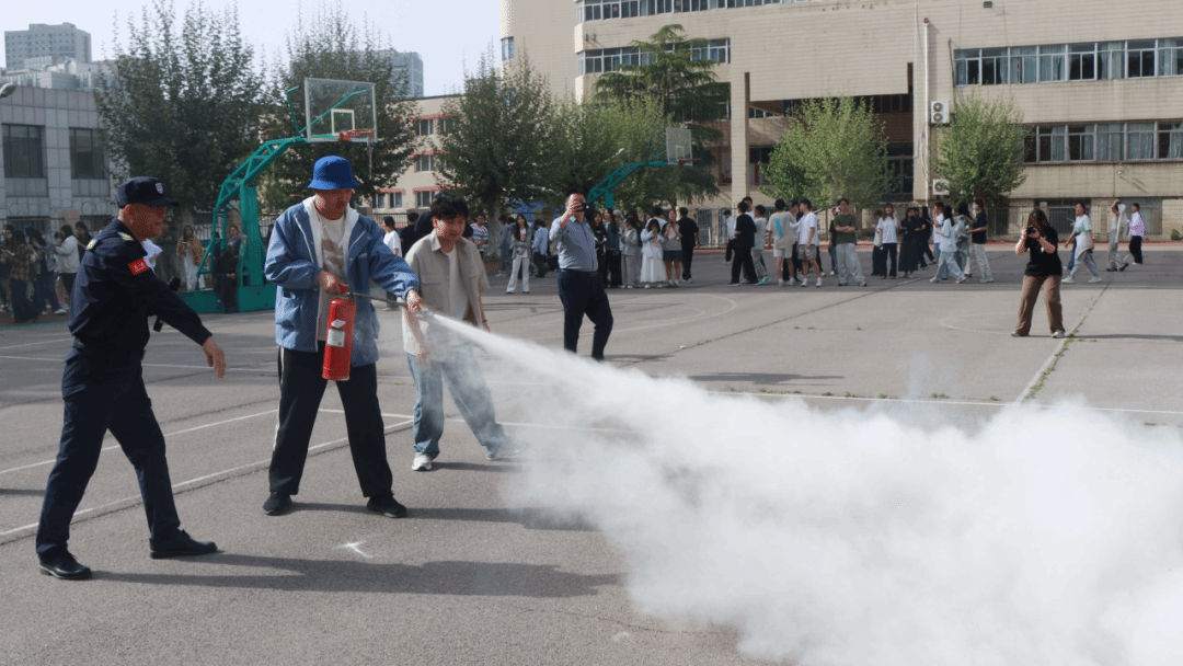 消防教官结合宿舍安全隐患和学校密集场所特点,对师生们进行了消防安全常识教育和消防器材培训。现场教学灭火器“提、拔、握、压”四字诀,讲解电器使用规范、逃生路线选择等知识,并通过模拟火场情境,指导应急报警、初期扑救等处置流程。师生们现场进行了灭火实操演练。