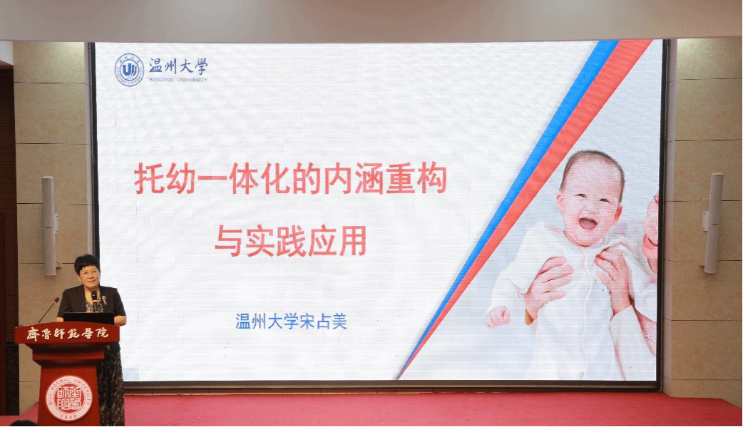首场报告由温州大学教师教学发展中心主任、学前教育学学科带头人宋占美教授主讲。宋教授以《托幼一体化的内涵重构与实践应用》为题,呈现了托幼一体化的政策背景和实践背景,详细梳理了托幼一体化政策,在历史溯源和现实需求的视角下阐释了托幼一体化的内涵,并结合实践,深入分析了理念的一体化、课程的一体化、环境的一体化、管理的一体化、师资的一体化、家园的一体化。她强调,托幼一体化不仅是服务延伸,更是教育生态的全面升级。