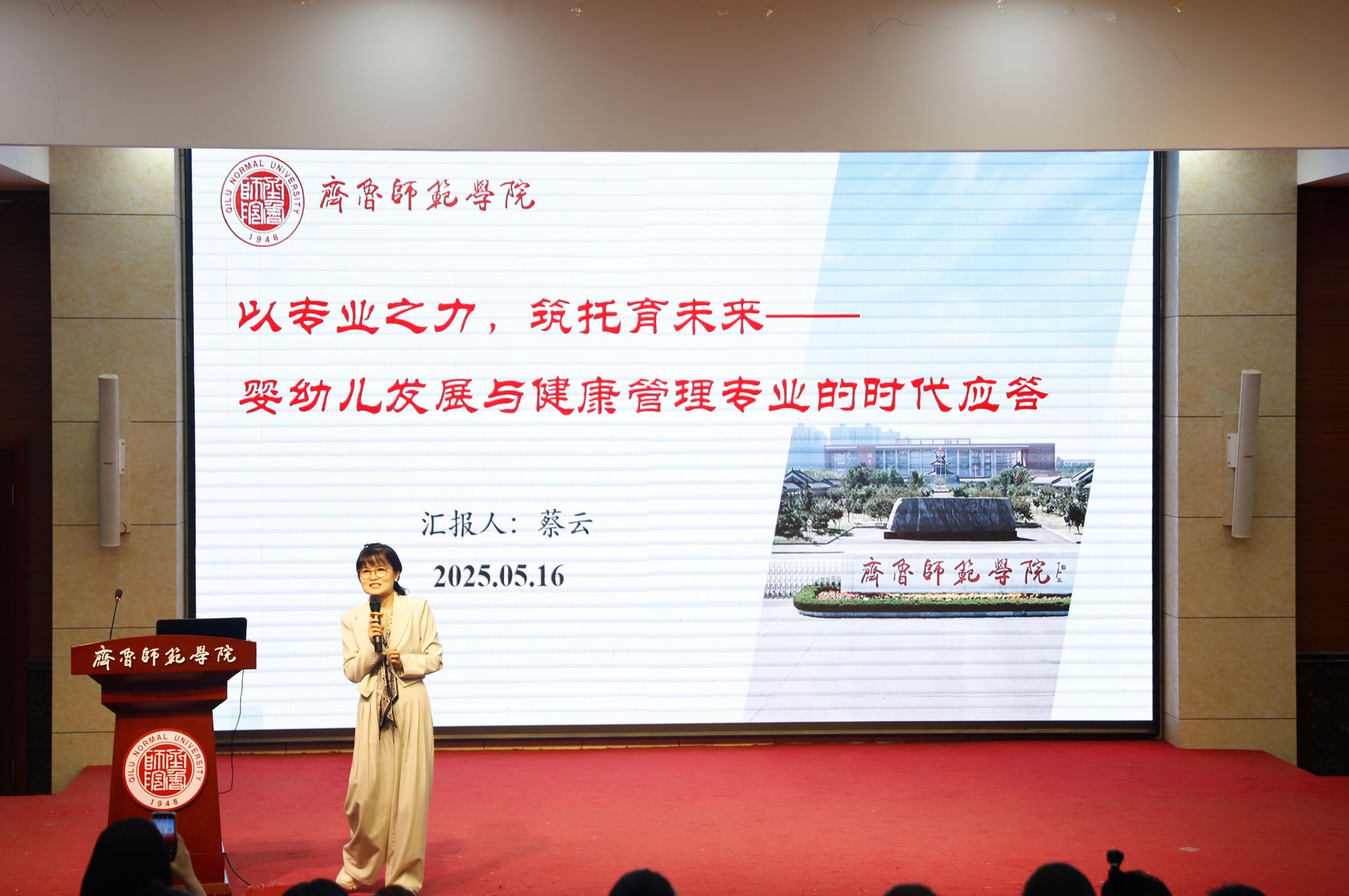 BEAT365英国官网婴幼儿发展与健康管理专业负责人蔡云副教授作了“以专业之力,筑托育未来——婴幼儿发展与健康管理专业的时代应答”的主题报告,从人才培养定位、课程体系建设、实践平台搭建等方面详细介绍了婴幼儿发展与健康管理专业建设情况。并从教科研指导、发展规划、环境升级、教师成长、高素质复合型人才培养等五个方面分享了山东省婴幼儿发展与健康管理现代产业学院助力托幼一体化建设可持续发展的运行经验。