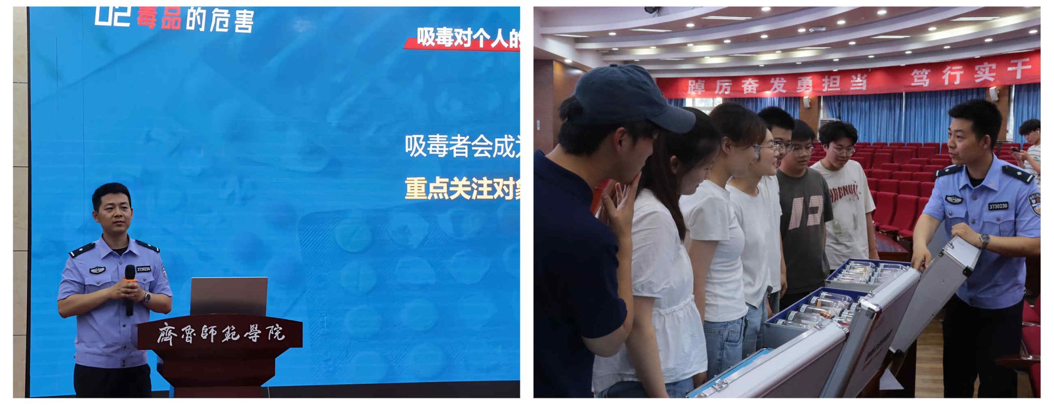 宣讲中,一段未成年戒毒人员的自述视频深深触动了在场学子的心灵,直观展现了毒品对青春的侵蚀。戒毒所警官还在现场展示了毒品仿真模型,让学生近距离辨识毒品伪装,提升识别能力。