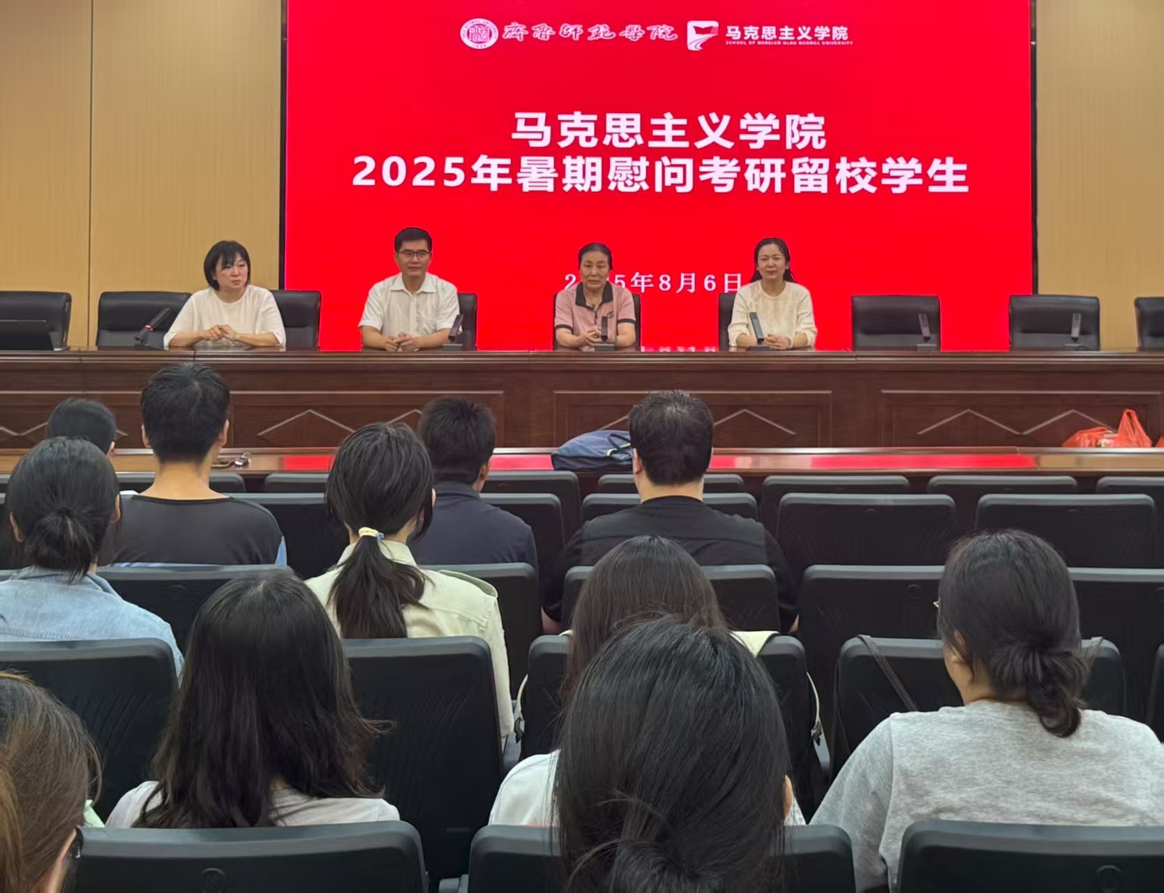 为强化服务保障、传递备考关怀,为考研留校学生撑起“清凉伞”,注入“强心剂”,8月6日,马克思主义学院在第二学术报告厅开展2025年暑期考研留校学生慰问活动。马克思主义学院学风建设指导教师王晓梅教授、党委书记郭百灵、院长赵立峰、党委副书记毛雯以及2022级全体考研留校学生参加活动,活动由毛雯主持。