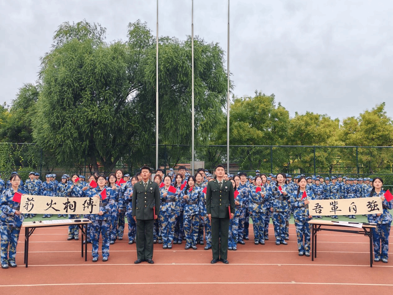 9月18日下午,学院2025级全体新生身着军训服在学校体育场排列站齐,《勿忘九一八》的朗诵声再次响起,在一声声呐喊中,全体新生铭记历史,缅怀先烈。强国必强军!全体学生合唱《强军战歌》,激昂雄壮,感受到了国防和军队现代化的辉煌成就,更加深刻理解了建设一支听党指挥、能打胜仗、作风优良的人民军队的重要性。2025级新生代表挥笔写下“薪火相传,吾辈自强”八个大字,表达了新时代青年,在以中国式现代化实现中华民族伟大复兴的新征程上,勇担历史使命,奋发图强的铮铮誓言。