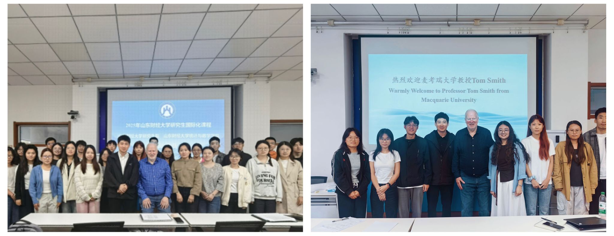 9月23日—24日,由山东财经大学主办的2025年研究生国际化课程在山东财经大学舜耕校区举办。为深化研究生联合培养成效、聚焦国际化视野培育,经济与管理学院青年教师杨晓彤博士与6名喀什大学联合培养研究生参与此次课程。澳大利亚社会科学院院士、麦考瑞大学应用金融系教授Tom Smith受邀为本次研究生国际化课程授课。