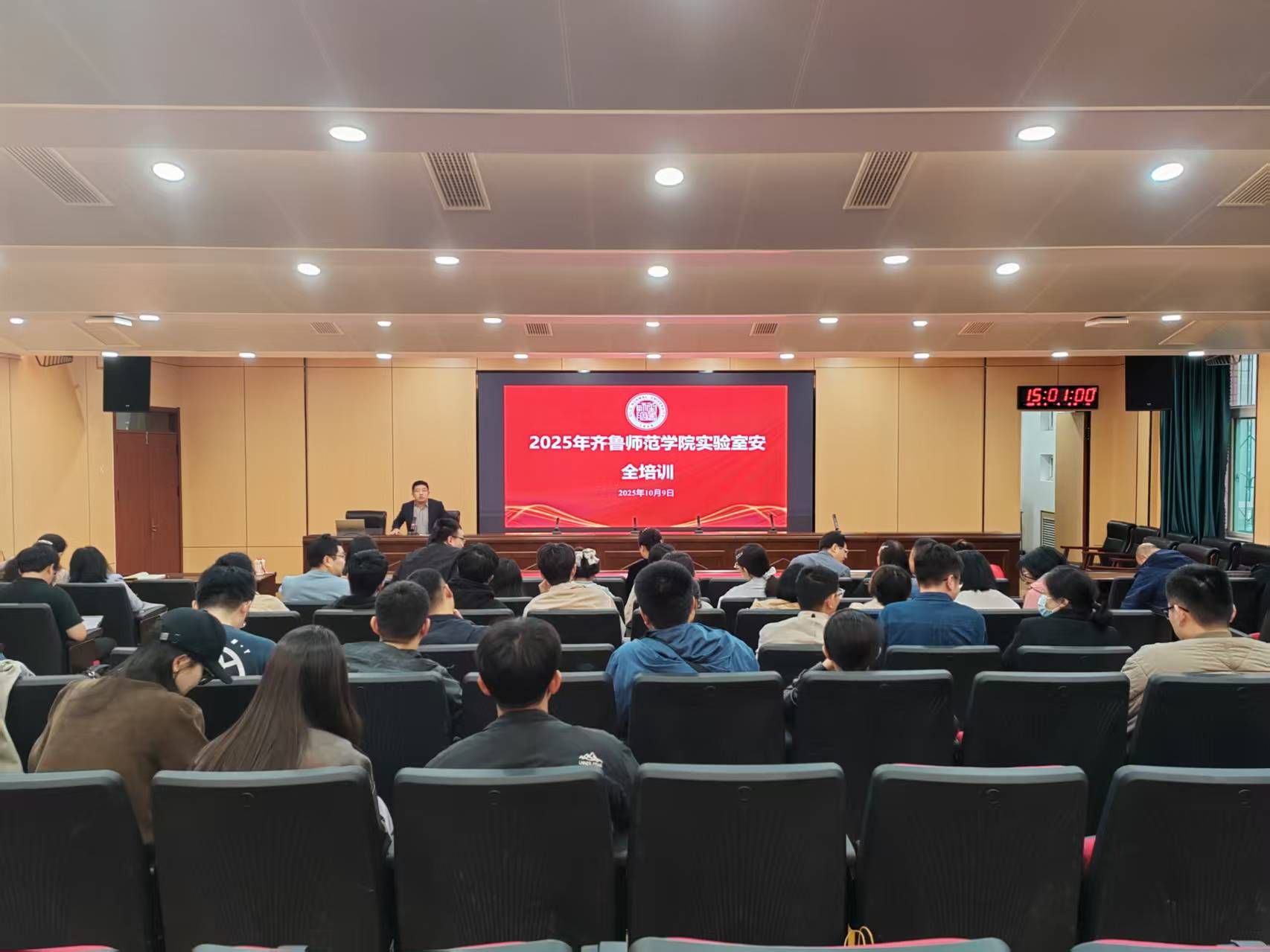 为切实提升学校实验室管理人员安全意识与专业能力,筑牢教学科研安全防线,10月9日下午,学校在章丘校区第一报告厅和第二报告厅召开2025年度实验室安全培训会议。会议由教务处组织实施,分为教师专场和学生专场,教师专场由各二级单位分管副院长、实验室(含教学实验室、科研实验室、实训室等)管理人员、实验教学人员参加,学生专场由各二级学院自行组织。