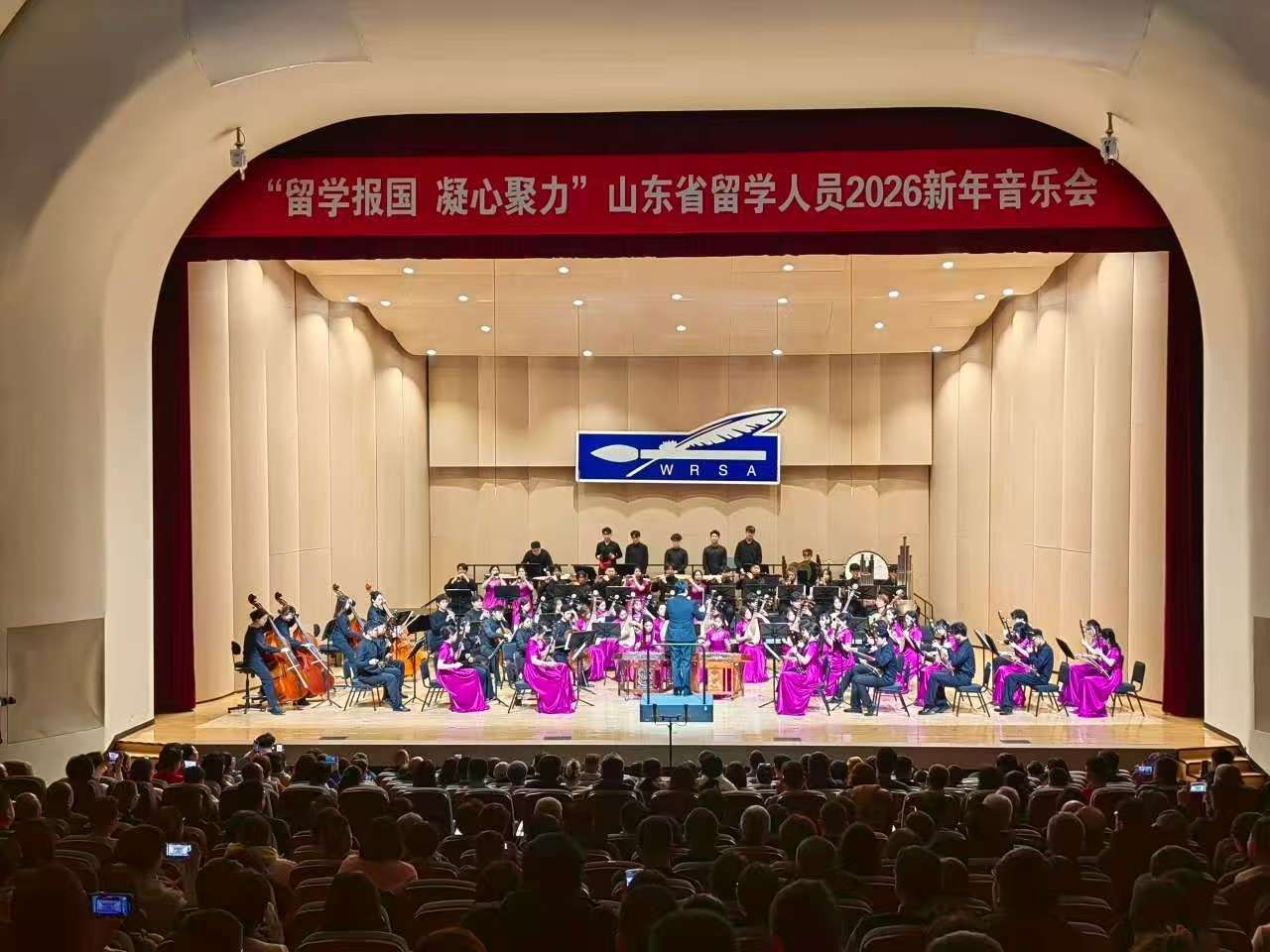 12月27日晚,由山东省欧美同学会主办的“留学报国 凝心聚力”全省留学人员2026新年音乐会在济南剧院举行。省直统战系统机关干部,省欧美同学会各专委会成员,各市、有关国有企业、高等院校、科研院所欧美同学会领导班子成员和部分会员代表,以及全省统一战线各领域代表人士等800余人共同观看演出。BEAT365官网党委委员、统战部部长宋新刚,欧美同学会秘书长田甜及20余名教师代表参加新年音乐会。