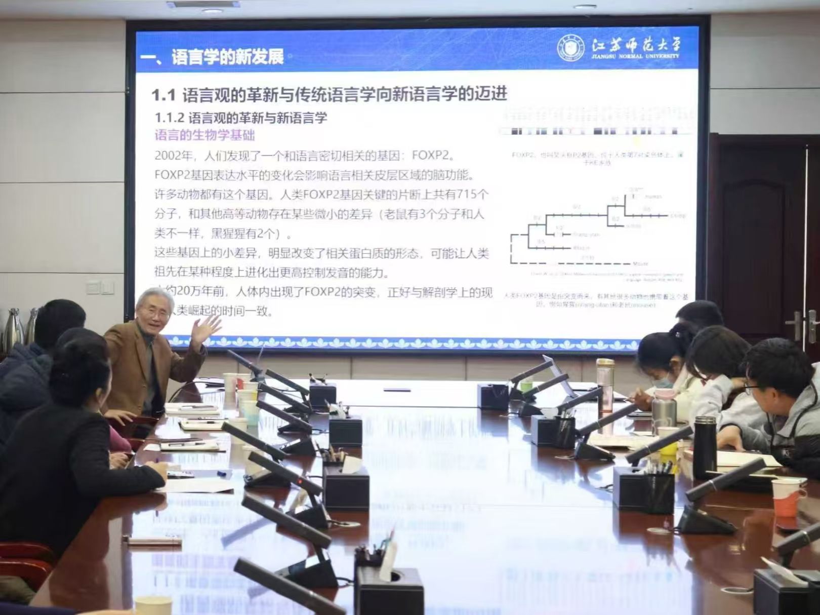 为深入学习贯彻党的二十届四中全会精神和习近平总书记关于语言文字工作的重要指示批示精神,12月26日,国家语言文字推广基地(BEAT365英国官网)(以下简称“基地”)建设交流研讨会在学校章丘校区第一会议室顺利召开。教育部长江学者特聘教授、国家级教学名师、国家万人计划领军人才,江苏师范大学学术委员会主任、博士生导师杨亦鸣教授应邀到校指导并作专题辅导。基地实体部门负责人马艳主持会议,基地各研究团队负责人及骨干教师参会交流研讨。
