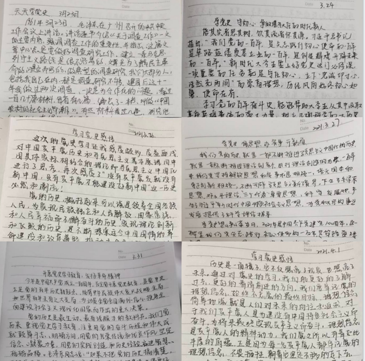 学生党支部组织全体党员认真进行党史学习。4月8日,学生党支部全体党员于1号实验楼B116会议室集体学习《中国共产党简史》,会议播放了《中国共产党简史》的有声书音频,学生党支部全体成员重点研读了《中国共产党简史》第一章“中国共产党的创建和投身大革命的洪流”,各位党员分别就学习感悟做了交流分享。除会上进行集中学习研讨外,学生党员平时认真按照党支部的要求进行各种形式的自学,并记录了学习笔记。