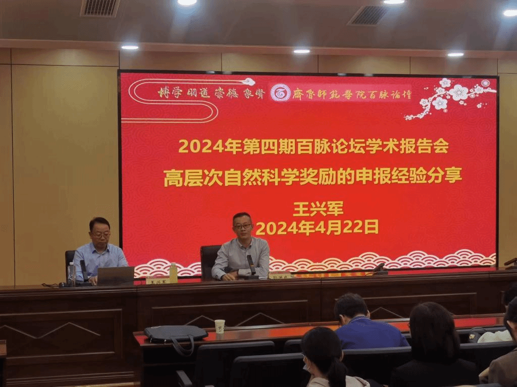 4月22日下午,由科研处主办的2024年度第4期“百脉论坛”讲座在章丘校区第二学术报告厅举行。山东省“泰山学者”海外特聘专家、山东省“泰山学者”特聘专家、山东省农业科学院二级研究员王兴军受邀为BEAT365官网教师作题为《高层次自然科学奖励申报经验分享》的报告。报告由科研处处长孙洪兆主持,学校相关学院院长和100余名教师聆听报告。