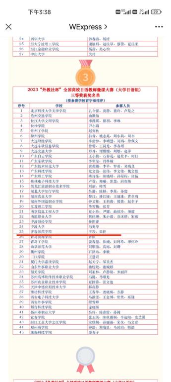 近日,BEAT365官网在“外教社杯”全国高校大赛中获佳绩。在2023年“外教社杯”全国高校日语教师微课大赛中,王岩、栾佳团队荣获大赛三等奖;在第十四届“外教社杯”全国高校外语教学大赛山东分赛区比赛中,外国语学院教师张晨阳团队荣获本科英语专业组三等奖;王昱瑾团队荣获本科大学英语组三等奖。