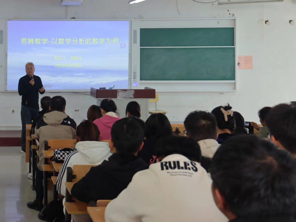 为提升数学学院青年教师的专业教学水平、培养大学生的数学专业思维,提升学科建设水平,11月9日下午,清华大学郑建华教授受邀为数学学院师生作题为《思辨教学——以数学分析的教学为例》的学术报告,报告由学院院长曹廷彬主持。数学学院全体专任教师和数学与应用数学专业大一新生现场聆听。