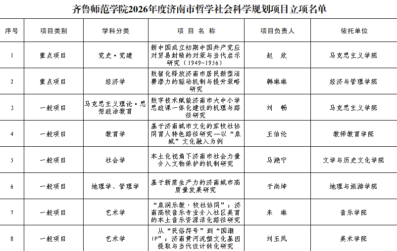 喜报!学校获批8项2026年度济南市哲学社会科学规划研究项目
