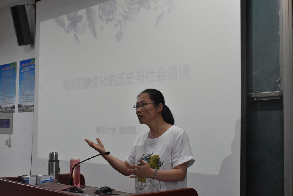 魏凤莲教授是鲁东大学历史文化学院副院长、教授、硕士生导师,致力于研究古希腊宗教、古希腊民主制度和全球史观等相关问题,在《世界历史》、《史学理论研究》等杂志上发表学术论文20余篇,主持国家社科基金项目一项,现已有著作与译作共六部,译著《简明:新全球史》获得第五届国家图书馆文津图书奖。魏教授在学术上孜孜以求,在教学上诲人不倦,她以深厚的学术功底,独到的见解,赢得了在场师生的热烈掌声。